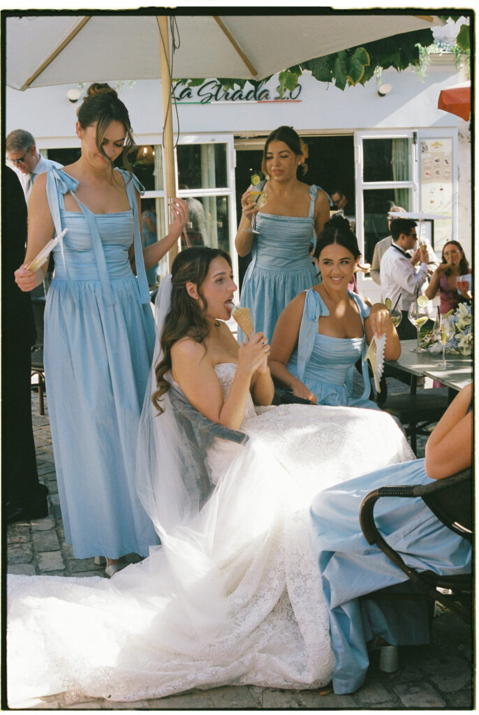 Locals passing by. Glasses clinking. Guests spilling out onto the street. It felt more like a summer gathering than a formal wedding — exactly my kind of thing.