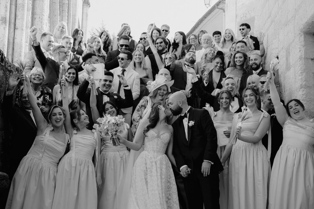 Katie & Ryan married in the local church, keeping things traditional and understated. Afterwards, instead of rushing back to the venue, everyone headed into the village of Pillac for welcome drinks in the town centre.