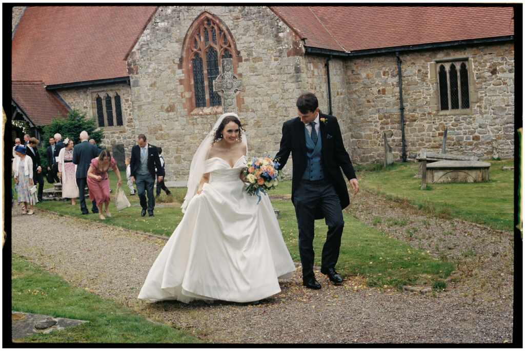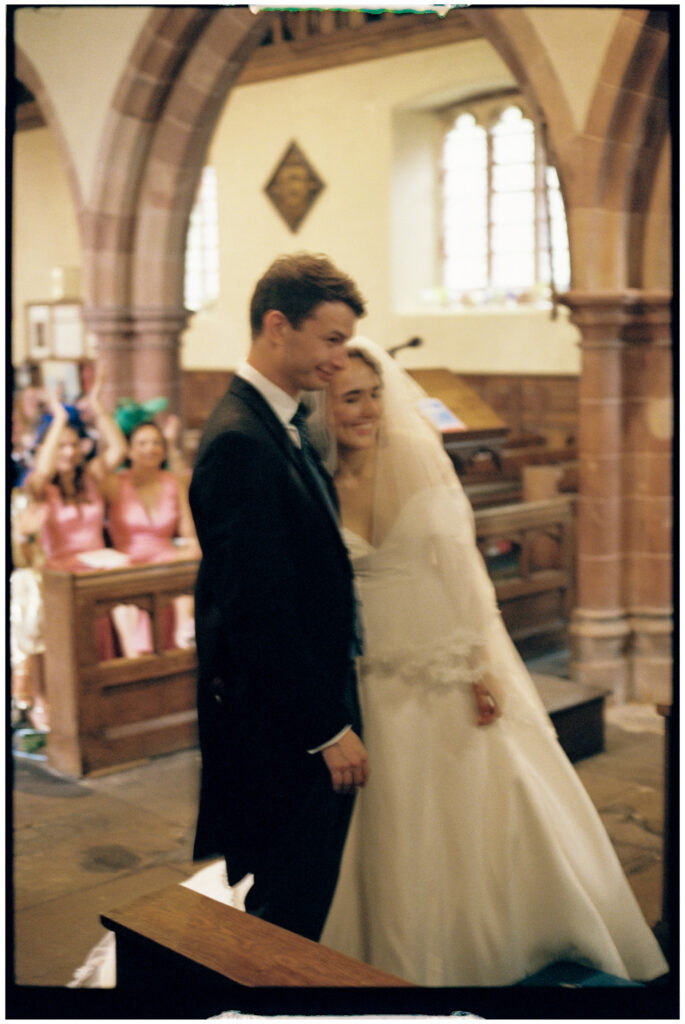 There are some weddings that feel timeless the moment you arrive — and Issy & John’s day was exactly that. Think rolling Shropshire countryside, a village church filled with familiar faces, and the kind of romance that wouldn’t feel out of place in a 90s rom-com. For me, this is where film wedding photography really shines.